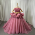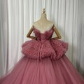 カラードレス ローズピンク ラッフルフリル 可愛い プリンセスライン 編み上げ 花嫁 前撮り