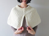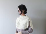 控えめにポコポコと、規則正しく並ぶ凹凸模様。空に浮かぶうろこ雲を見つけたとき「この模様を毛糸で編んで肩まわりに纏わせてみたい」と思ったことがきっかけで、試作を重ねてつくったケープです。
