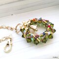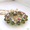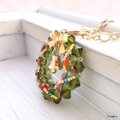 外側のオリーブは6ミリのスワロフスキーで表面はオーロラ加工のチェコビーズ。