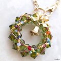 グリーンを主体にした土台にスワロフスキーのカラフルな飾りを付けたクリスマスリース。