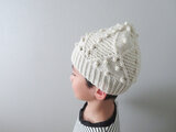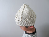 冬の空気に映えるスノーホワイトの帽子。凍えた手で丸めた雪玉を真っ白な小山の陣地に隠して、夢中で遊んだ雪合戦の思い出を帽子の模様にのせました。