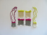 ネオンカラーをアクセントにした配色で、ループ編みのモケモケがついたマットをつくりました。その名のとおりコップやマグカップのマットとしてはもちろん、そのほかの器・小ぶりのプランター・お人形・オブジェ・鍵をのせるインテリアの小さなスペースとしても。