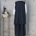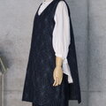 紬のぷっくらパンツとベストのセットアップ フリーサイズ 濃紺 大きめ 着物リメイク