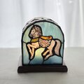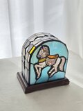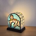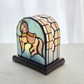 白馬の絵付けを施した絵本のようなステンドグラスのライトです。