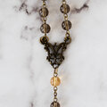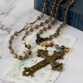 マリアの祈りの珠にはスモーキークォーツ、主の祈りの珠には11月の誕生石のシトリンを使ったロザリオです。