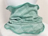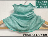 イタリア生地エメラルドグリーンアーガイル柄ハンドメイドネックウォーマー、光沢感