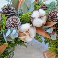 針葉樹特有の良い香りがほのかに漂い…心と体が癒されるリースに仕上がっています。
