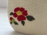 赤い椿のお花を刺繍しました。