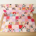 100枚の布を縫い合わせて、カラフルに仕上げました(布1枚あたりのサイズ:5cm×5cm)。