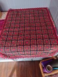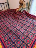 昔ながらのモチーフ編み「グラニースクエア」クリスマスカラーの糸で編みつなぎ、一枚に仕上げました。