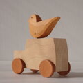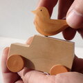 素材:シカモア・ヒノキ(コトリ部分)・豚革(タイヤ部分)・鉄(ネジ部)