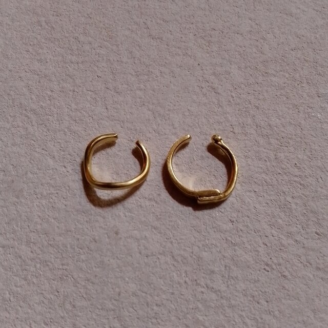 真鍮の波デザインイヤーカフと、アシンメトリーイヤーカフをセットにしました。