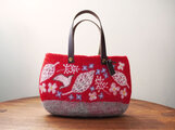 全て羊毛で手作業で入れた柄を縮絨してフェルト化しています。