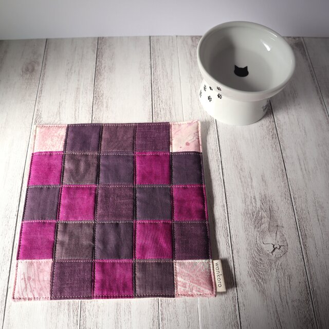 ペットマット フードマット ご飯マット ランチョンマット 水マット ドッグ キャット わんこ にゃんこ 犬グッズ 猫グッズ 犬用品 猫用品 敷物 コットン 布製 紫 スクエア ハンドメイド 手作り ギフト お祝い 贈り物 誕生日 バースデー