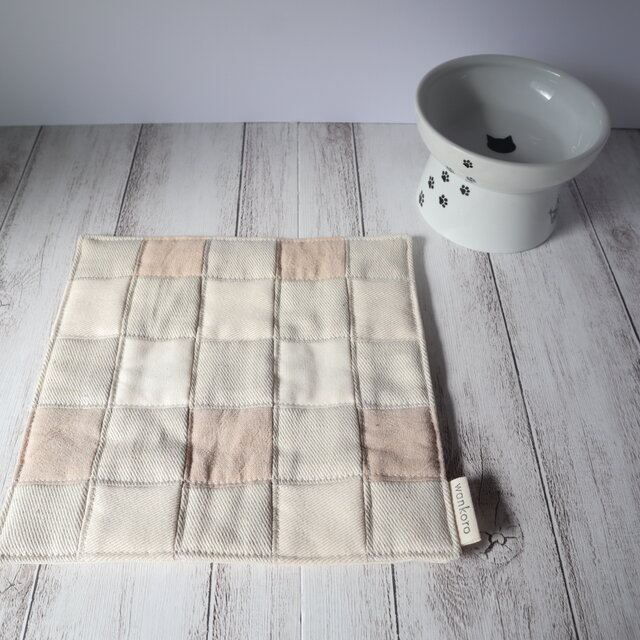 ペットマット フードマット ご飯マット ランチョンマット 水マット ドッグ キャット わんこ にゃんこ 犬グッズ 猫グッズ 犬用品 猫用品 敷物 コットン 布製 ホワイト ベージュ アイボリー スクエア ハンドメイド 手作り ギフト お祝い 贈り物 誕生日 バースデー