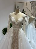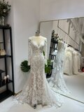 ウェディングドレス 韓国風ドレス 長袖 贅沢な小花総レース 取り外しロングトレーン マーメイドライン 拳式