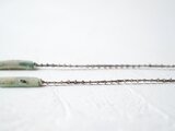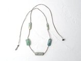 グレーの紐に細かなシルバーチップを編み込み、繊細かつ軽やかな印象のロングネックレスに仕立てました。