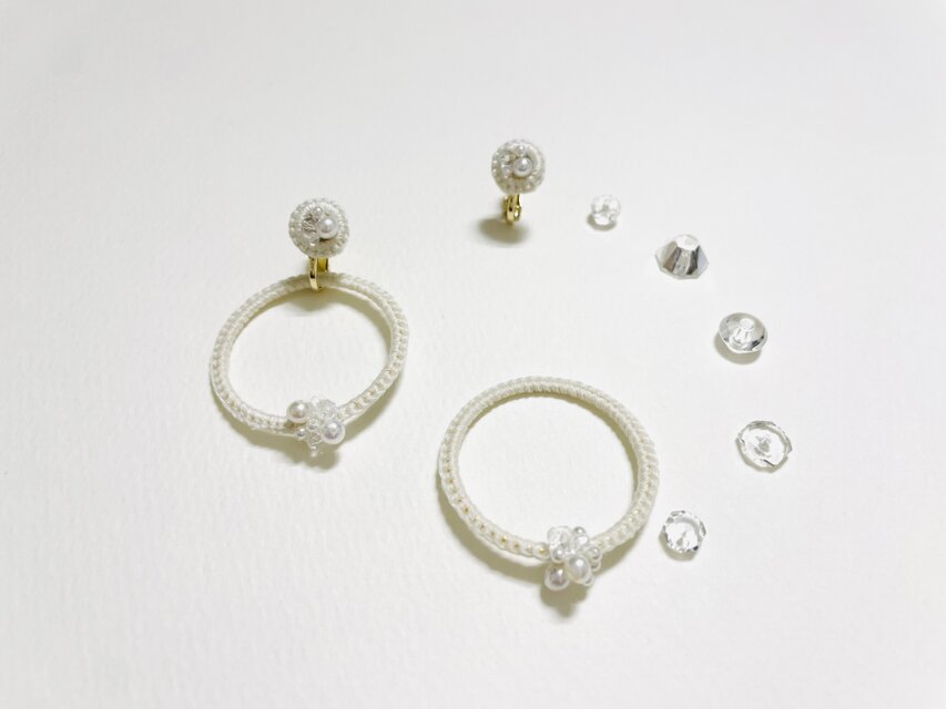【2個セット 縁ーenー】手刺繍 軽いつけ心地のブローチ LホワイトとSシルバーb012作品が届きました。繊細な刺繡とガラスビーズ、思っていた通りステキです。 いろいろな組み合わせができそうで、楽しみです。 ありがとうございました。