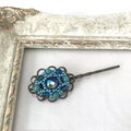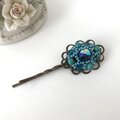 #ヘアピン #ヘアアクセサリー #オーバル #楕円 #ターコイズ #シードビーズ #チェコ #ガラス #ビーズアクセサリー #ビーズ編み #ビーズモチーフ #古美 #レース #透かし #パール #上品 #クラシック #クラシカル #アンティーク #青 #カプリブルー #立体 #春 #夏 #秋 #冬 #誕生日 #プチギフト #フェミニン #大人かわいい #キラキラ #ビーズステッチ #テグス編み #お洒落