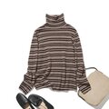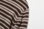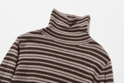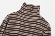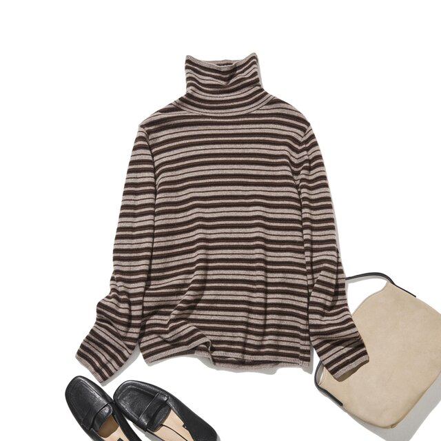 「理想の柔らかさ」の先へ。ヤクのダウンとウール混紡 ボーダーニット タートルネックニット ブラウン 251204-1