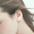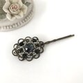 オーバル形 アンティーク調 ヘアピン レース モチーフ チェコガラス ビーズ ブラック 黒 モノトーン スワロフスキー