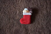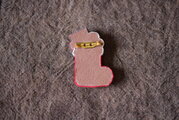 牛の床革を長靴お菓子の形に彫ったものに、豚革をかぶせました。ブローチです。