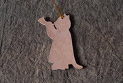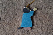 牛の床革に豚革を貼って作った猫のオーナメントです。