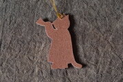 牛の床革に豚革を貼って作った猫のオーナメントです。