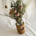 ラタンを編んだ後に、コーヒーで2度染めて色を付けています。半日〜1日ほど完全に乾かしてから、保護のために塗装をしています。