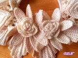 葉っぱを重ねたようなレースに、印象的な花を飾りました