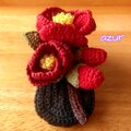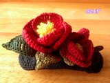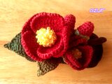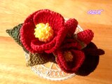 一重咲きの椿 紺椿と呼ばれる花をイメージして編みました