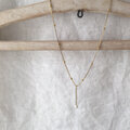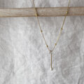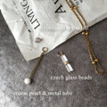 「コットンパール&メタルチューブ「チェコガラスチューブビーズ」、そして「ジルコニアシルバーロンデル」の3つのチャームを装いに合わせてお楽しみいただけます。