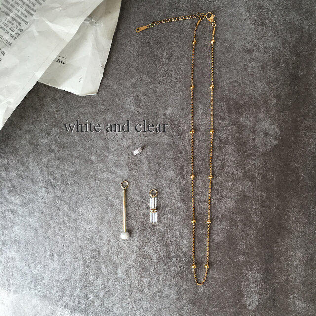 付け替えできる コンビネーションメタル チャーム ネックレス / ホワイト&クリア