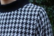 シンプルなシルエットですが、黒白グレーのハウンドトゥースチェック柄がトラディショナルでエレガントな雰囲気のワンピースです。