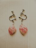 優しいピンクのハート型のインカローズです。インカローズは大きめの縦17~18mm、横13~14mm。こうしたおしゃれな形の石ビーズはなかなか見つかりません。女性の優美さを引き出してくれる魅力的な石なので、プレゼントにもぴったりです。インカローズは白っぽく見えたり深いローズカラーが映えたり光の入り方によって見え方がかなり変わりますので色味についてはすべての画像を総合的にご覧ください。