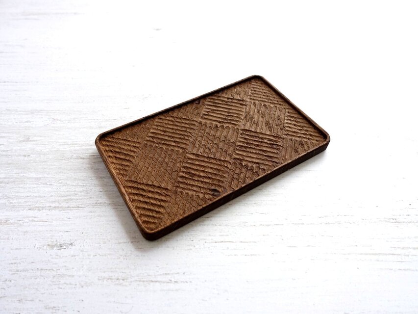 力強い彫りなのに、思いのほか手触りは優しく、また裏面もリバーシブルで使えるという発見もあり、いい買い物をさせていただきました。奇しくも新潟のへぎそばを送って頂いたのと重なり、へぎそばのへぎってこのことだったんだと合点した次第です。大事に使わせていただきます。有難うございました。