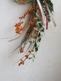*花材:ドライフラワー(ツルウメモドキ・ユーカリ二種・綿の実・ナンキンハゼ等)