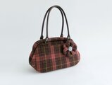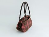 尾州ウールのチェック柄ツイード生地の、クラシックな雰囲気のボストンバッグです。