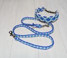 ピンクのハーフチョーク&カフェリードに続いてお願いしたこのブルーの首輪&リードもとってもステキな仕上がりで凄く気に入りました しっかりとそして丁寧に編んであり、大型犬のうちの子でも安心して使えそうです これからの季節はお散歩するのに最高な時期になりますので早速使いたいと思っています 終始丁寧な対応をしていただき、ありがとうございました 大切に使わせていただきます