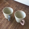 取手を 青・青・濃青、 青・青・濃青 で描き巻いたマグカップです
