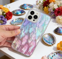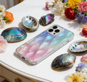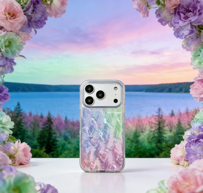 このケースは天然の貝殻を使って作られています。貝殻は海のエッセンスそのもので、樹脂のカバーの下ではまるで魔法のように輝きます。貝殻のきらめきは、角度や時間、照明によってさまざまに変化するんです。まるで自然がいつもそばにいるような感覚を味わえます。