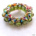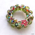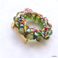 外径はオーロラ加工のオリーブカラー、表面を玉虫加工のメタリックブルー、裏面を鈍色のチェコビーズ使用で見えないところも徹底してシックに。