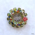 極小のシードビーズとカラフルなスワロフスキーを織り交ぜた飾り付けで適度な立体感が出ています。