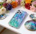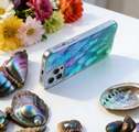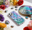このケースは天然の貝殻を使って作られています。貝殻は海のエッセンスそのもので、樹脂のカバーの下ではまるで魔法のように輝きます。貝殻のきらめきは、角度や時間、照明によってさまざまに変化するんです。まるで自然がいつもそばにいるような感覚を味わえます。