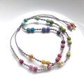 コロンとした可愛らしいインドで制作された手作りの古布ビーズとマクラメ編みを組み合わせたネックレスです。