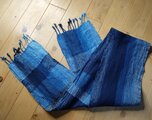 処分寸前の頂いた藍染糸です。藍の濃さもいろいろと混ぜてみました。