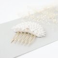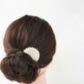 凛とした純白の美しさを髪に。 「白菊」や「白ダリア」をイメージして制作した、つまみ細工のヘアコームです。