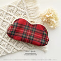⭐️《英国調 チェック》赤 ウール ハート がま口 コスメ メガネケース ポーチ です♪