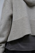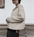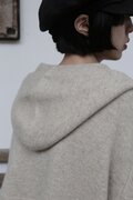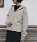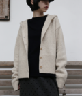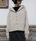 ボリューム感のあるフードが特徴的で、どこかノスタルジックな雰囲気をまとうカーディガン。程よくゆとりのあるシルエットと、女性らしい肩ラインを作るドロップショルダーが、ラフになりすぎない絶妙なバランスを実現しています。コンパクトな丈が全体をすっきりとまとめ、さまざまなボトムスとの相性も抜群。季節を問わず活躍する、可愛らしさと機能性を兼ね備えた一枚です。