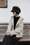 レトロムードが漂う、フード付きコンパクトカーディガン ウール100%カーディガン ベージュ251206-2